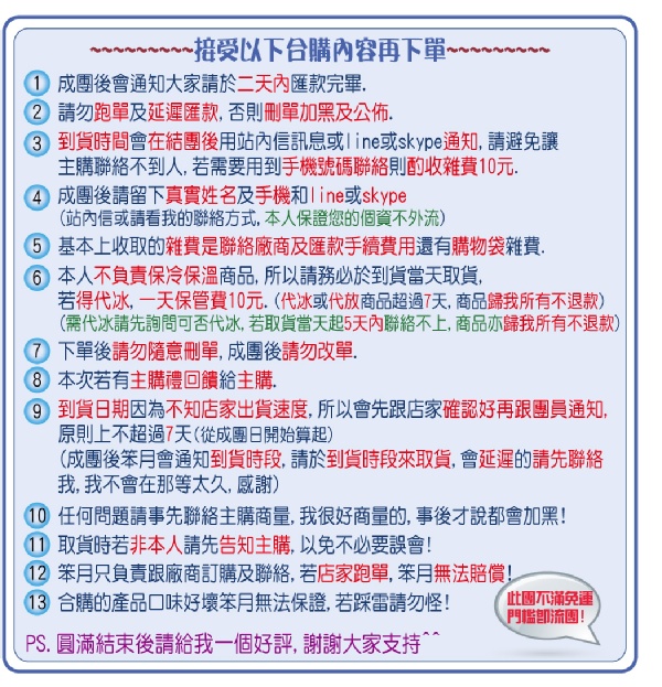 PS1>因為笨月家離桃園火車站還有些距離,若面交想選桃園火車站的需負擔雜費(油資)10元,但要先跟我講好並留言在合購單上哦!