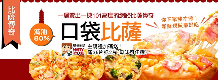 ▃▃▃購買規則▃▃▃✚ 單筆訂單數量≧70份→免運,單筆訂單數量<70份→運費200元。✚外島注意!!不論訂單數量是否達免運門檻70份,每箱需加收150元運費(一箱可裝70份)。✚ 業務審理到您的訂單時,會發送站內信通知您「切確到貨日」。✚ 本店商品為接單現做的手工商品,每天產能有限,到貨日會依照主購下單順序釋出,若您指定的到貨日名額已滿,將會為您安排其他到貨日,造成不便,懇請見諒。✚任何問題歡迎使用線上快答【LINE:@mhpizza】。▃▃▃非買不可的理由▃▃▃◕ 一週賣出一棟101高度的網路比薩傳奇!◕ 減油80%獨家餅皮配方,吃過的人:真的一點都不油。◕ 只要烘烤5分鐘,快速料理,懶人冰箱必備。◕ 不怕比較!網路PIZZA瑪莉屋最好吃!◕ 你下單我才做!新鮮現做最好吃!◕ 蟬聯數位時代百大人氣賣家、愛合購店家爭霸戰速食料理類第一名!◕ 瑪莉屋是少數連餅皮都是自己製作的網路比薩專賣店,餅皮不僅添加蔬菜,更是減油80%的健康比薩,加熱也方便只要5分鐘。