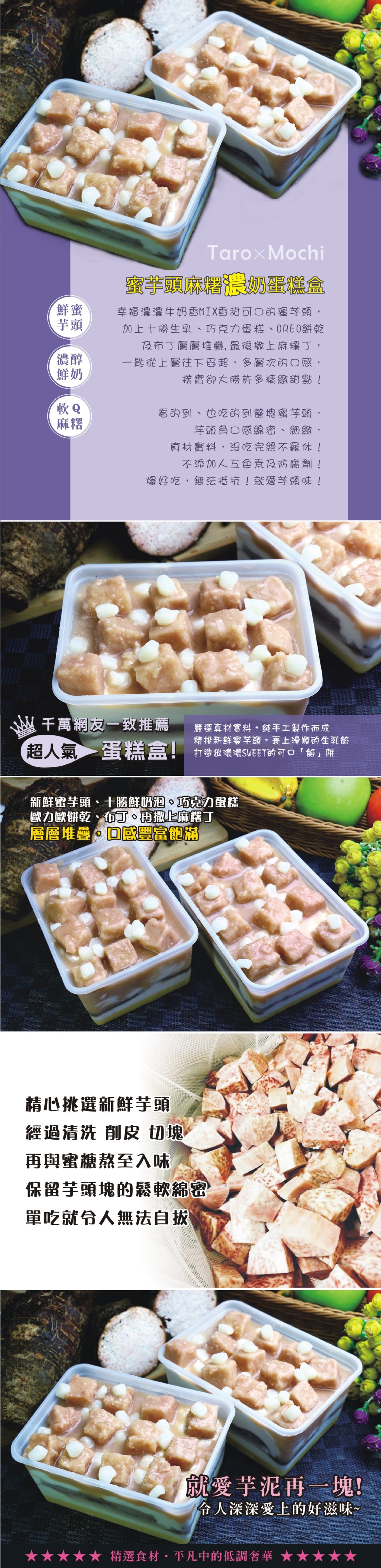 6/5(三)到貨 採用十勝鮮奶打發的奶泡,微甜不油膩,入口奶香特濃~~滿滿的新鮮芒果,黃澄澄誘惑你的味蕾 還有蜜芋頭+麻糬丁,層層口感好滿足  | [大合購] 美食村濃奶蛋糕盒 ♝ 微甜不油膩,入口奶香特濃