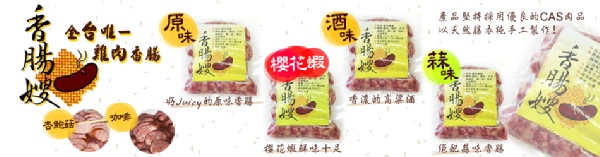 傳承兩代至今已邁入38個年頭的香腸嫂手工香腸,以獨家配方研發出各式獨特口味!無論是香腸、臘肉、鹹豬肉‧‧‧ 在桃竹苗地區、離島,甚至海外華人區都有極高的評價 !