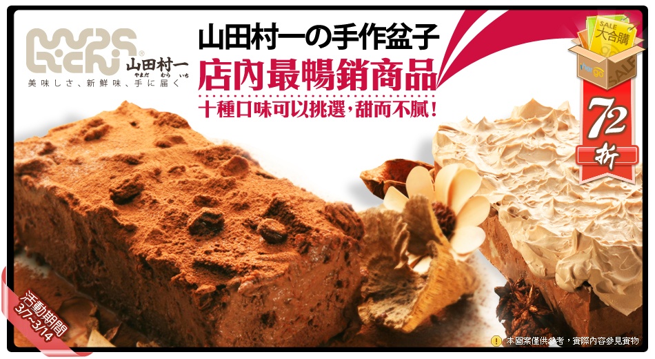 手作盆子的極致美味~特別又濃郁,有著滑順的口感~網路團購熱門甜點!『單一訂單超過30盒~每盒再退款8元』~~最低優惠就在本檔大合購,趕快把握唷!!『單一訂單超過50盒~每盒再退款16元』~~最低優惠就在本檔大合購,趕快把握唷!!退款時間於4/15-4/20內完成,請下定後於站內信件寫明退款銀行及帳號。每一合購或立即訂購,總訂購份數需滿15盒(不需為倍數),就能享有大合購特惠及免運費;如訂購總份數未滿15盒,需自行負擔運費140元。*單筆訂購總份數滿15盒 贈送主購禮香蕉巧克布蕾捲 一盒(可倍數累積)*本商店提供優惠價格及高等級食材商品,故「皆無附提袋」。*本次合購皆為付款後8-20日內完成出貨,可於此期間內預定『到貨日期』及『時段』,相關問題可來電『02-29087586』詢問。【網友分享】製作精巧...讓視覺感動,真的是讓我荷包失血的首具要件!http://blog.liontravel.com/sarahsiao/post/7125/20680新嘗試---山田村一http://tw.myblog.yahoo.com/jw!nMo.q2GfXRuX.7_GXX4z/article?mid=2732團購瘋"山田村一" 提拉米蘇http://tw.myblog.yahoo.com/jw!GOB915WBGBjvLU5.p1btN.ME4Q--/article?mid=4392 *本檔大合購最後到貨日為:4/5(為方便店長備貨,務必在到貨前五天完成匯款喔!)