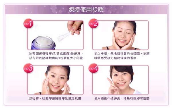 使用方法:夜間使用完眼膠、眼霜後,以內附的挖棒取出大約兩顆珍珠大小的量,先薄薄一層敷在下眼瞼往下三公分處,剩餘使用量再敷在上眼皮至眉毛部位,同時均勻塗抹於上、下眼尾的連結處,使用過後不需再沖洗。