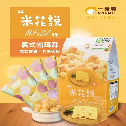 一米特-米花說堅持使用100%的台灣國產稻米, 承襲日本的烘烤技術,結合米食匠人獨制研製的技法,將細緻淡雅的米花香,綴以天然的田間蔬果作物,讓每一口都是頂級獨特的天然享受。