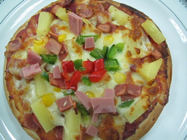 成 份: 麵粉、乳酪絲、水、蕃茄泥、鳳梨、玉米、火腿、糖、鹽