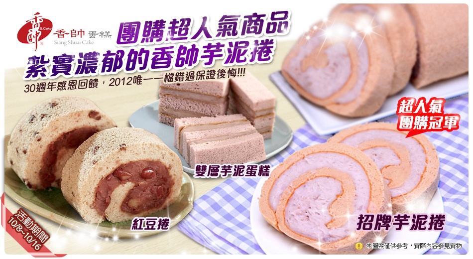 合購介紹 10月22日(一)匯款完成---取貨日:10月30日 (星期二) | [大合購] 香帥蛋糕~紮實濃郁的芋泥捲