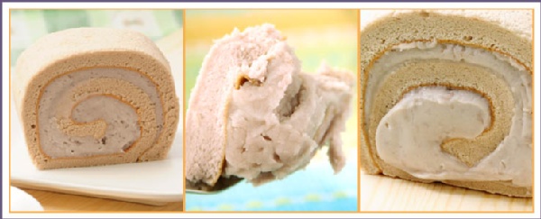 香傳30年的招牌口味,芋泥被捲裹在綿密的蛋糕裡,一口咬下去,又純又濃的芋餡如冰淇淋般在嘴中化開。