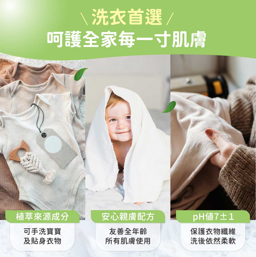 溫和洗淨,呵護您的肌膚,保護衣物纖維。