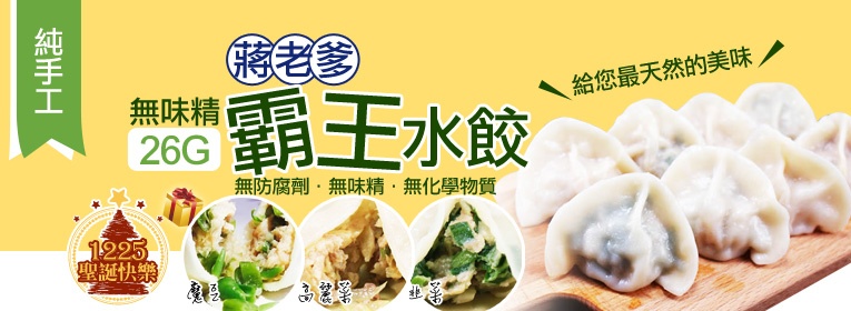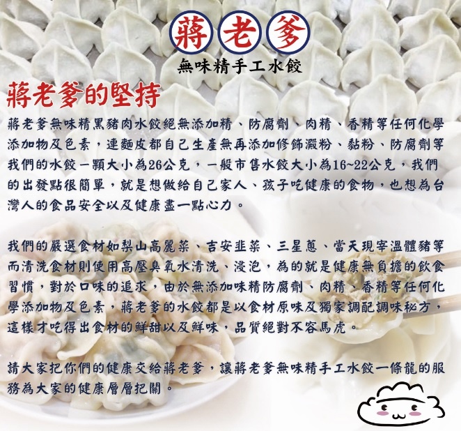 蔣老爹 ₪ 無味精26g手工巨無霸黑豬肉水餃 (未滿2000需分攤運費) | [大合購] 蔣老爹 ₪ 無味精26g手工巨無霸黑豬肉水餃