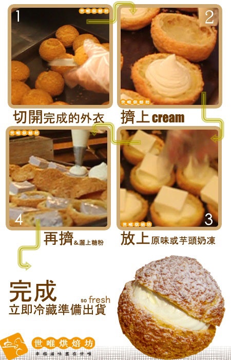 產品名稱:凍奶泡芙-原味(6入)/盒 尺寸大小:直徑約6.5cm以上、重約60克以上 成 份:雞蛋、麵粉、紐西蘭奶粉、砂糖、海藻糖、奶凍 、法國進口鮮奶油 製造日期:出貨當天製作 保存期限:冷藏3天 特 色:用最好的進口原料製作,加上用心烘焙而成的酥脆外衣,夾香濃濃的cream,中間藏著QQ彈的原味奶凍,冰涼入口即化,真是一大享受。 到貨請立即冷藏,請勿陽光直接照射 | |