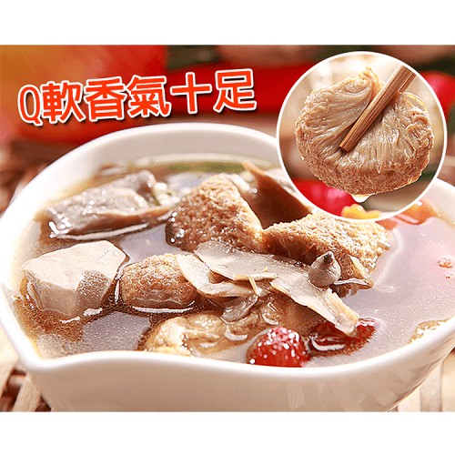 成 份:猴頭菇、杏鮑菇、全蛋液、薑、芥花油、冷壓麻油、水、鹽、調味料(L-麥麩酸、氨基乙酸、琥珀酸二納、DL-胺基丙酸、麥芽糖糊精)素蠔油(含大豆、小麥)、紅棗