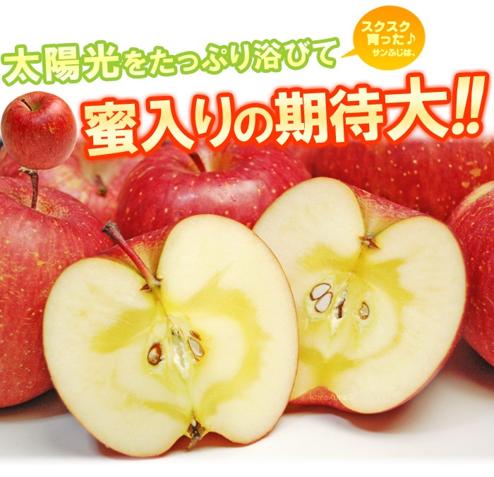 日本青森縣擁有蘋果最適合的氣候環境,在陽光的直射沐浴下,果皮顏色會轉變為深紅色,而這裡日夜溫差大,又會觸動植物本能,結成如糖霜般的「蜜腺」,使之甜度為一般蘋果的兩倍,還具有獨特香氣,為蘋果中的極品。