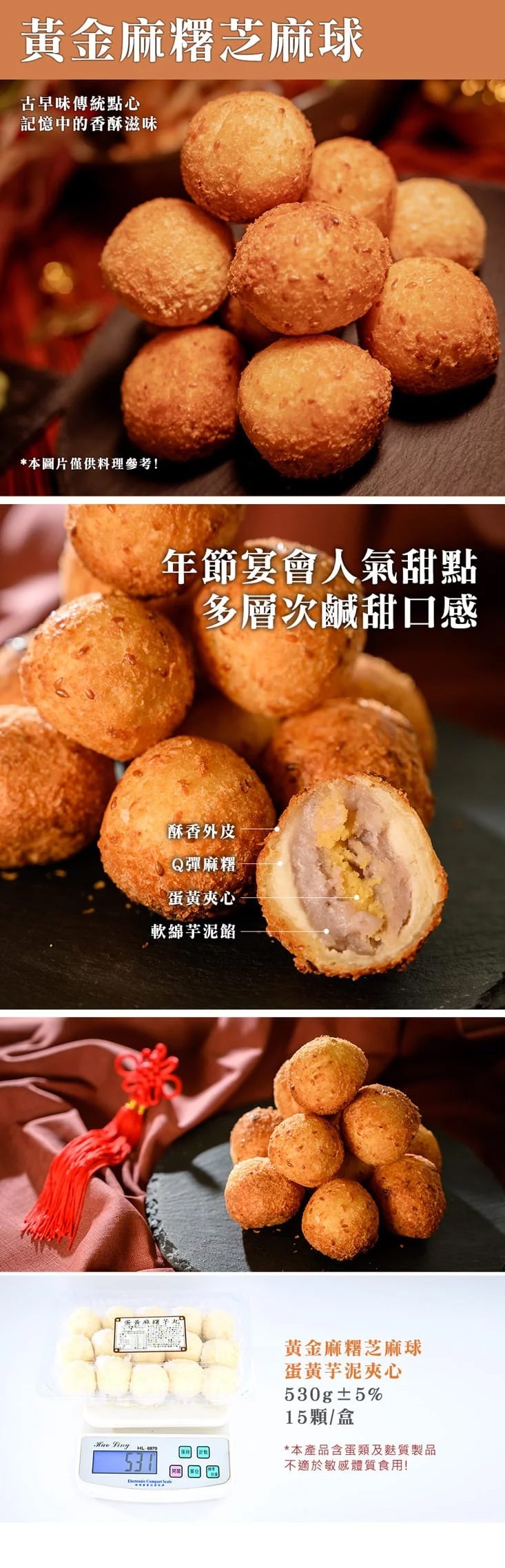 古早味傳統點心,記憶中的香酥滋味,多層次口感,香酥外皮、Q彈麻糬、軟綿芋泥餡、蛋黃夾心,阿嬤的手工味道在這裡 | [大合購] 黃金麻糬芋泥芝麻球 ❖ 記憶中的好滋味