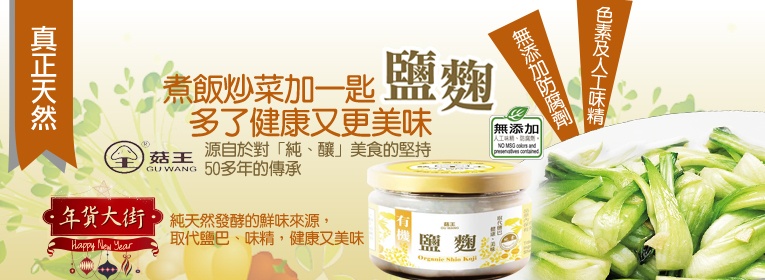 之前想以鹽麴入菜的消費者,只能透過親朋好友自日本帶回,或自行發酵,菇王新上市「有機鹽麴」體貼消費者,美味不必遠求,省去動手發酵的等待時間,輕鬆享有新一代健康養生的純天然調味品。