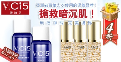 V.Ci5薇詩艾 – 高機能保養修護系列 ! 慶祝亞洲拓展年中慶 – 大合購強先大回饋,送~又送~再送 ! 重頭到腳帶來最神奇的煥膚效果,讓您如初生嬰兒般細緻柔嫩 高效深層肌因賦活,滲透美白改善暗沉!