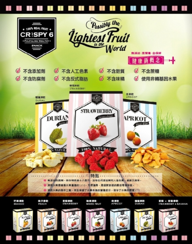 ◕ 100%脫水,瞬間凍乾,零下40度,低熱量,無添加◕ 康熙來了、上班這黨事、爸爸去哪兒、大學生了沒推薦等名人強力推薦 ◕ 無添加 高營養 全保鮮 拒絕垃圾食品,追求健康生活 你買的不只是果乾,而是對生活態度和品質的追求 ◕ 在任何時候都帶上水果去旅行,想走就走的旅行,帶上想吃就吃的水果 ✚ 單筆訂單金額滿24份即可免運,未滿24份需自行負擔運費100元。✚ 配送僅限台灣本島,離島訂購請寄信洽詢 謝謝!✚ 單筆訂單金額滿24盒,主購禮送 pocky棒 香蕉/牛奶 隨機出貨 (可倍數累積)✤ 最後付款期限為到貨日前3天,若超過活動時間沒付款,訂單視同失效。✤ 訂單處理天數約3個工作天。✤ 為保障彼此權益,出貨順序與贈品皆以完成匯款者優先,未完成匯款前恕不預留到貨日喔 ☺✤ 103年10月31日為本檔最後到貨日,無法展延 請見諒。主購確認到貨日可配合再進行下單,感謝 ☺✚ 本檔商品為最近很火紅的商品,很難控制是通路最便宜的價格, 大合購團隊已經努力爭取到最好的上檔價格,本檔商品為現貨供應, 量也較為穩定。如果有會員發現其他通路比較便宜, 請讓我們知道 我們會公布網址,讓其他會員參考,感謝 ☺