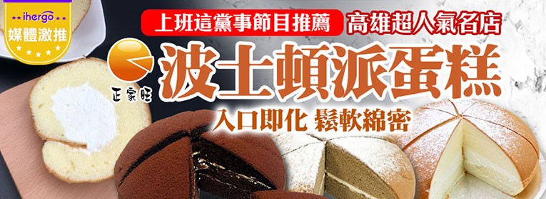 ♞ 高雄正家旺蛋糕坊,以入口即化的超綿密波士頓海綿蛋糕聞名,而延續製作柔綿口感的烘焙工夫~♞ 超大9吋波士頓派,口味眾多,份量十足,超值價只要160元!♞ 大口吃派最幸福,鬆軟綿密蛋糕入口即化♞ 黑巧布丁波士頓蛋糕,香濃可可搭配Q彈布丁,無敵美味!✚ 單筆訂單份數滿12份【倍數】即可免運,未滿12份的【倍數】需自行負擔運費160元。✚ 商品由黑貓配送,配送僅限台灣本島,離島訂購請寄信洽詢。謝謝!* 最後付款期限為到貨日前3個工作天,若超過活動時間沒付款,訂單視同失效。* 訂單處理天數約7個工作天(不含例假日),星期日、星期一不到貨。* 為保障彼此權益,出貨順序與贈品皆以完成匯款者優先,未完成匯款前恕不預留到貨日。* 108年11月01日為最後到貨日,無法展延 請見諒。主購確認到貨日可配合再進行下單。