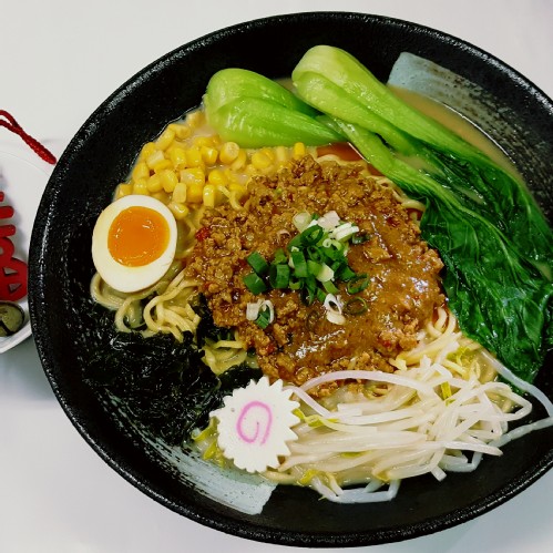 內容物:拉麵,豚骨濃縮高湯,擔擔醬包(台灣豬肉),魚板,玉米粒,海帶芽….等