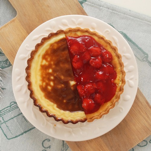 產品特色:【烤布丁起司】+【紅櫻桃起司】一派雙享、兩種口味