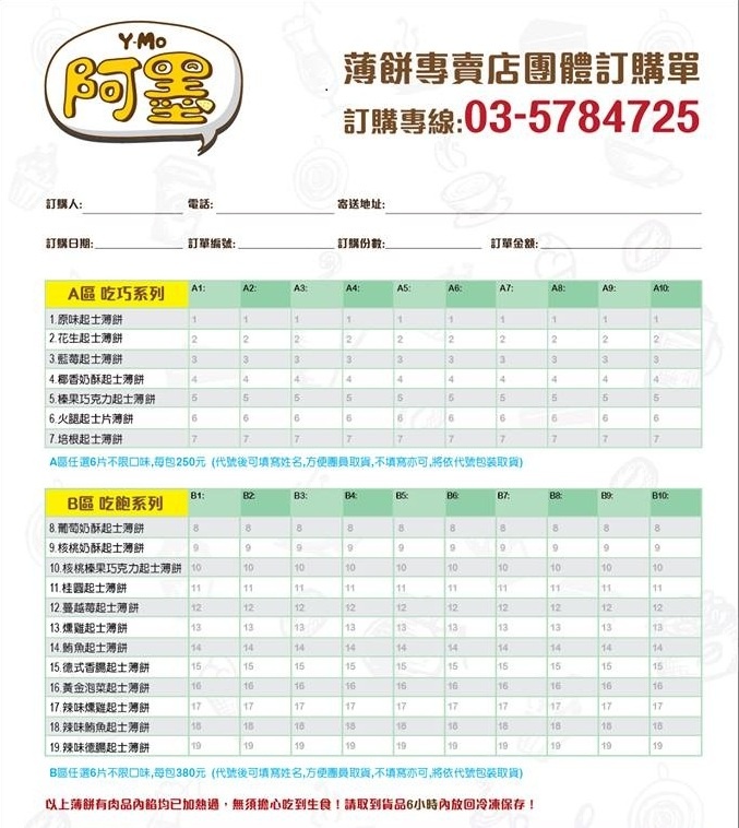 ►最低出貨量為1包6片,每包可任選1~6種口味►請於結帳時於備註欄內填寫指定口味與數量(若需excel訂購單,請洽詢店長唷)♠ 阿墨起士薄餅採用10吋墨西哥餅皮,由全省最大的烘培業者『德麥食品』生產,餅皮內鋪著滿滿的『起士』,加熱後充滿濃郁的起士香♠ 餡餅完全手工製作, 內餡肉品都經過熟成處理,不需擔心吃到生的內餡,完工後立即放置於『-20度』冷凍保存,完全結凍才會出貨。♠ 不論早餐/點心/宵夜,都是冰箱必備好物♠ 絲絲入口,扎實又豐富的餡料讓你每一口都吃得到滿足