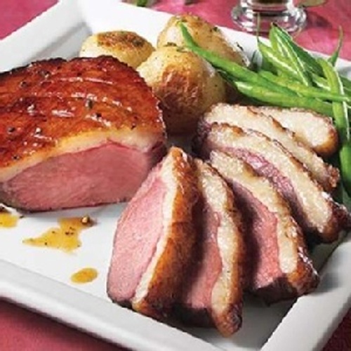 嚴選來自英國櫻桃谷種北京鴨,不飽和脂肪酸比其他家畜類高出許多,鴨脂肪熔點比人體略低,較不易造成過多的肥胖問題;櫻桃鴨養殖於東部水質優良、氣候涼爽的自然環境,使其身上的油脂相較其他品種來得豐富。櫻桃鴨胸外皮色澤猶如玫瑰金般亮麗,肉色如同櫻桃紅般綻放,肉質更是鮮嫩扎實,咀嚼起來多汁、甜潤、有彈性,無一般鴨肉的腥味,大口咬下肉香在嘴邊徘徊不已唇齒留香!法式櫻桃鴨胸口感鮮嫩若用牛排部位作比擬,更享有鴨肉中的菲力美譽!!喜愛吃牛肉的饕客們,不妨來試試這道鴨肉中的菲力美饌。