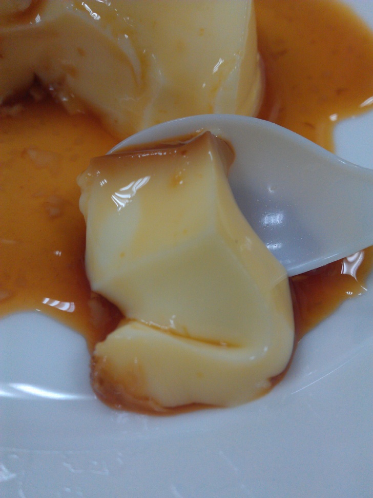焦糖口感...砂糖用小火乾燒成咖啡色,沖水至適當濃稠度,口感帶有一點微苦,需搶時間分至布丁容器,不然會硬掉