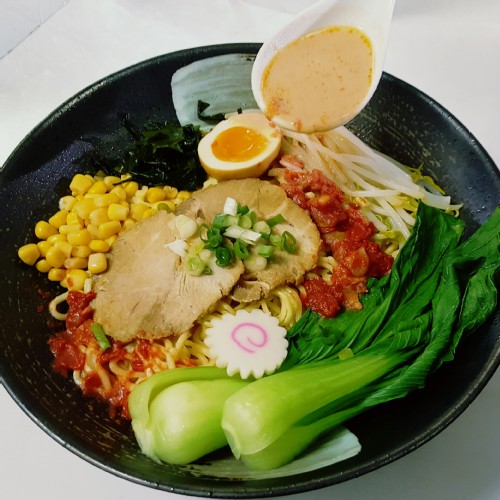 日式生拉麵1包,特調蕃茄豚骨濃縮高湯1包,料包1包(叉燒,魚板,海帶芽,玉米)
