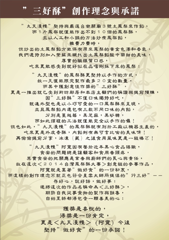 產品名稱:獲獎『三好酥』,<2014台灣鳳梨酥大賽>創意獎