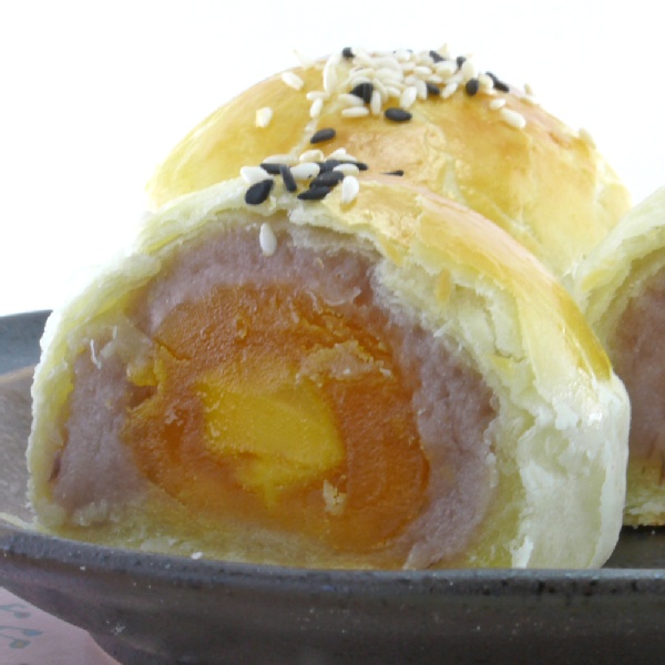 蛋黃酥一般有棗泥口味跟烏豆沙口味,近年來因為製餡技術進步,又陸續開發出其他的口味,甚至還有水果口味,多年來我一直不喜歡棗泥那種酸酸的味道,不過似乎很合長輩的胃口,在中友設櫃的時候,除了烏豆沙口味以外,我們還有芋頭跟綠豆口味;三個口味都很多客人喜歡,各自擁有死忠的擁護者。
