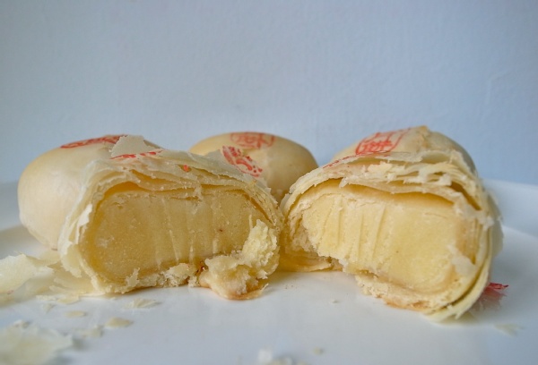 金黃色的蛋黃酥外皮,光用看的就令人垂涎欲滴