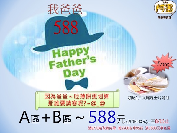 本月活動a+b原價630, 優惠價588, 再送一片火腿起士薄餅,共13片喔~