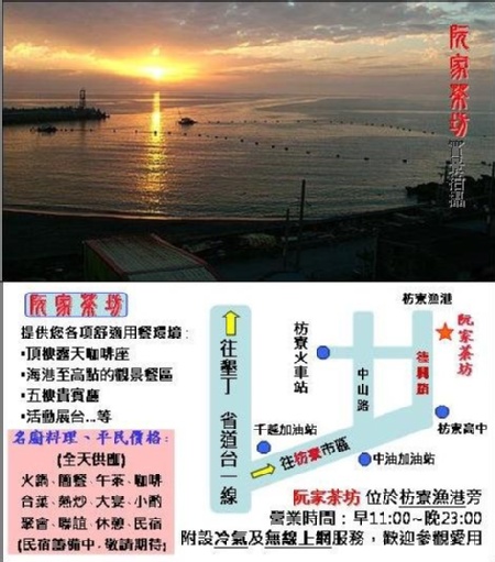文章後面附上:枋寮阮家茶坊天空景觀餐廳ㄟ菜單,如果覺得圖片太小不是很清楚,也還有一頁一張的,歡迎各位朋友點進去看個仔細